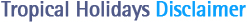 TROPICAL HOLIDAYS disclaims all warranties with respect to this Web site or your use thereof, express, implied, or otherwise, including without limitation, all warranties of merchantability and fitness for a particular purpose. TROPICAL HOLIDAYS shall not be liable for any damages resulting from the use or misuse of this site or the information on this site.